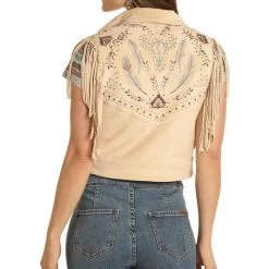 Rock & Roll Cowgirl Women’s Embroidered Micro Suede Cropped Vest