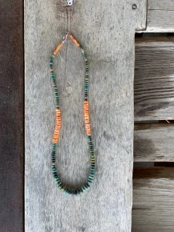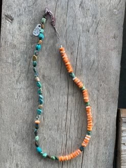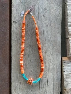 Rustic Rose Jewelry | 15โ Orange Spiny Oyster Stars & Faux Turquoise Necklace