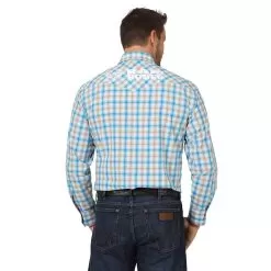Wrangler Men’s Ram Rodeo Logo Plaid Shirt