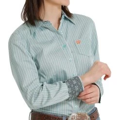 Cinch Women’s Dot Stripe Print Button-Down Shirt