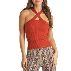 Rock & Roll Cowgirl Women’s Ribbed Knit Criss-Cross Tank Top