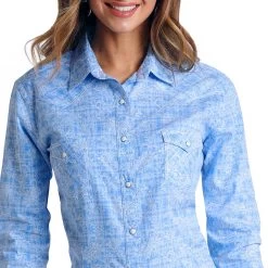 Rough Stock Women’s Micro Dobby Print Snap Shirt