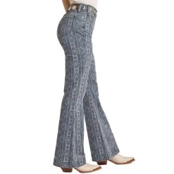 Rock & Roll Denim Women’s Aztec Mid Rise Stretch Flare Leg Trouser Jeans