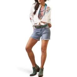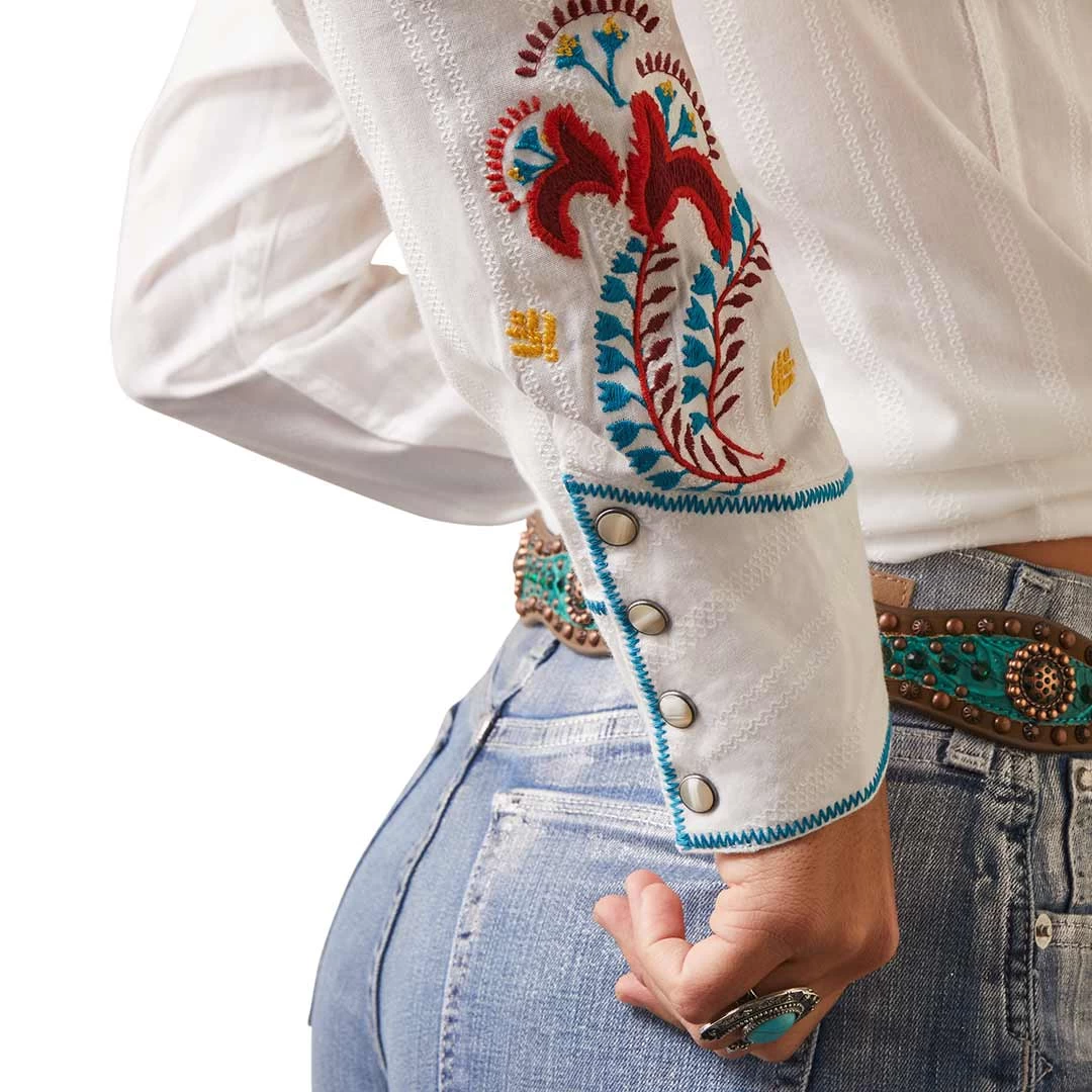 Cowgirl-tested, rodeo-loved, this retro top adds vintage western flavor to any outfit. The folk-inspired embroidery and contrast piping lends a classic look to everything from jeans at the back gate, to denim skirts on the dance floor.