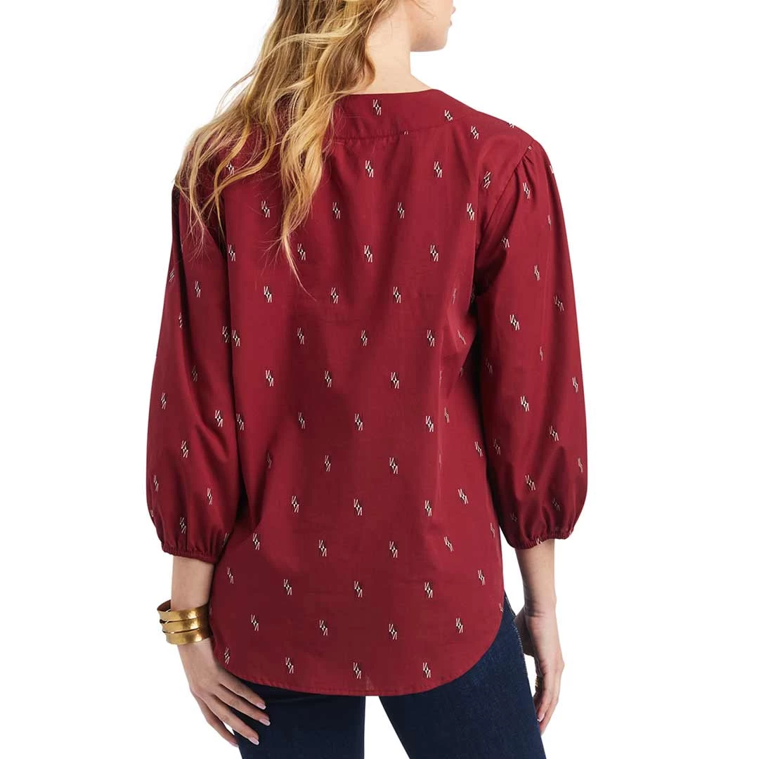The artists at Centinela Traditional Arts created a pattern inspired by the Chimayo weaving tradition and we added it this flowy peasant top. Complete with metal buttons, it’s a fun go-to for post-rodeo nights out with friends.