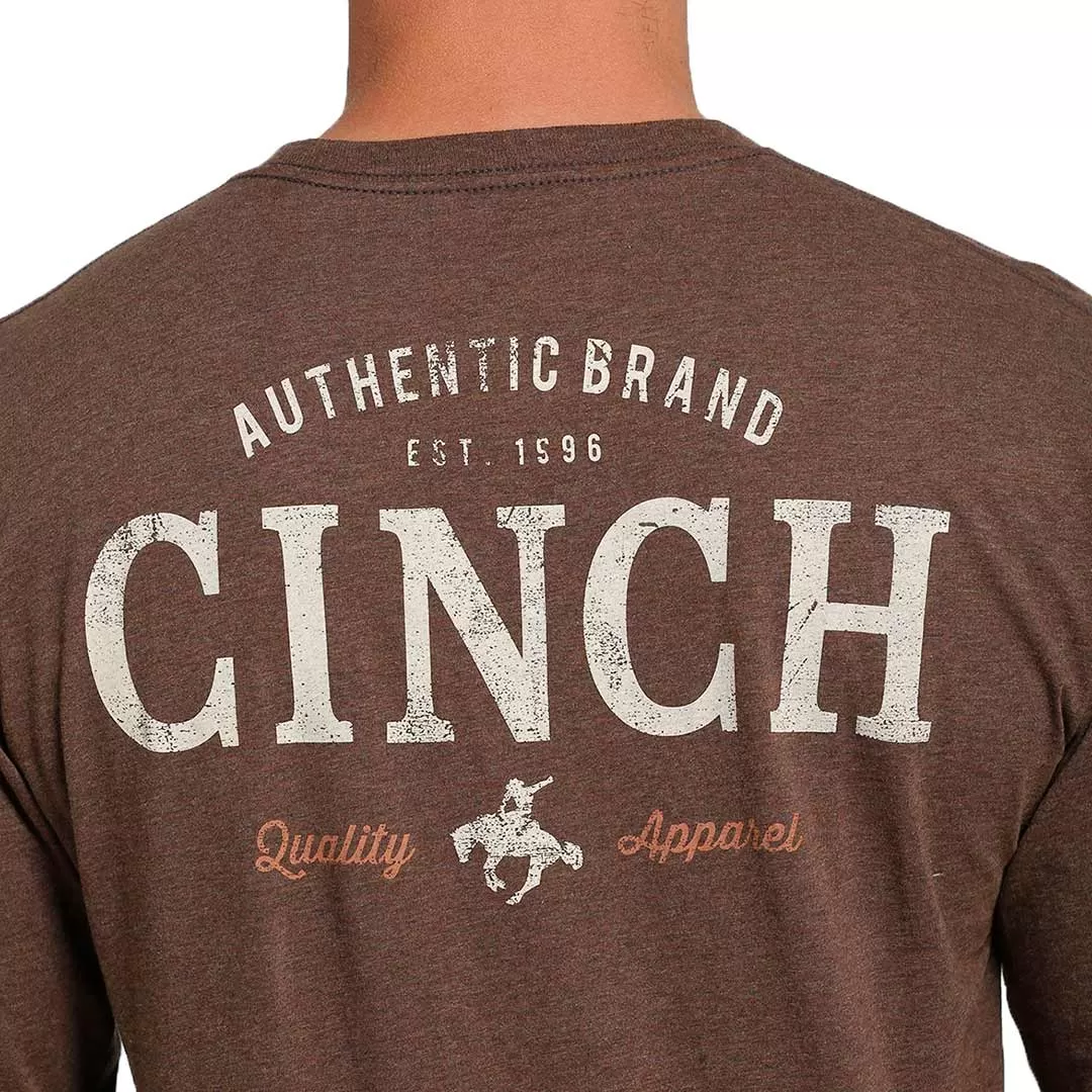 When you want soft, comfortable, and long-wearing, choose a CINCH brand crew neck tee like this one. Made in heathered brown cotton-poly jersey material, this tee features a front and back screenprint and creates the perfect look for a kick-back weekend.