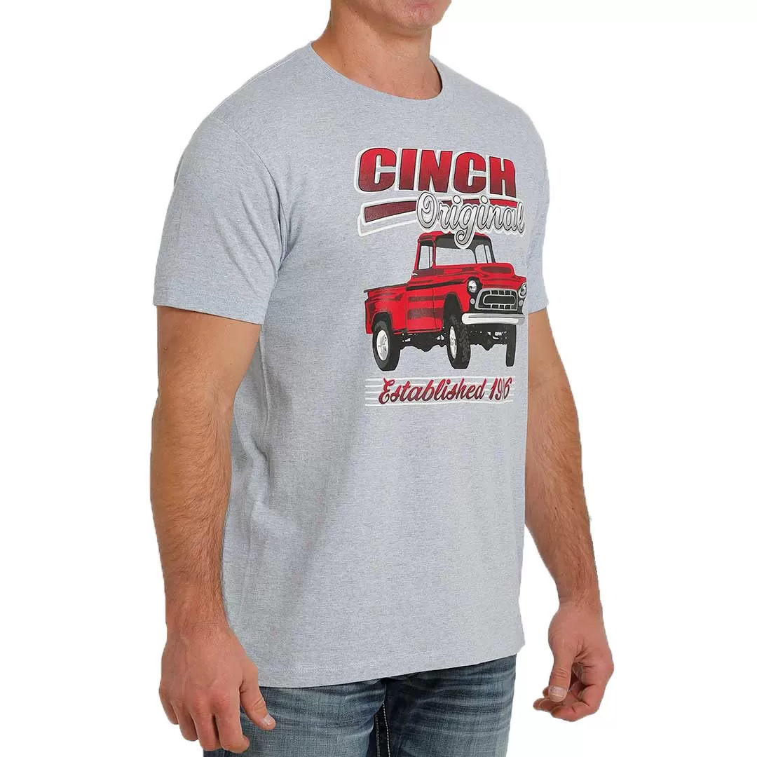 Long workdays happen, especially on the ranch. No matter what’s on your to-do list, you’ll stay comfortable in a heather grey cotton-poly crew neck by CINCH. Featuring standard tee styling and a front screen print, this tee wears well solo or layered under your favourite jacket.