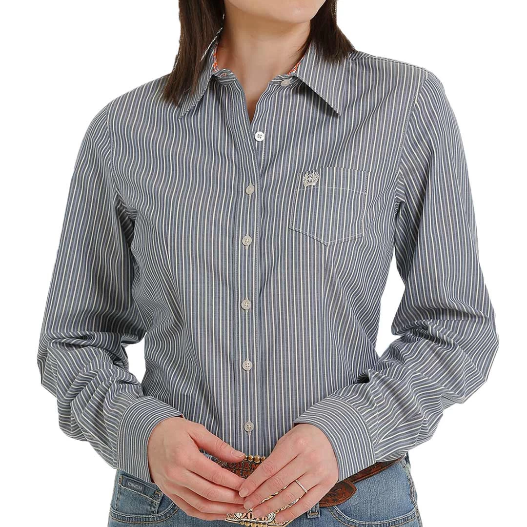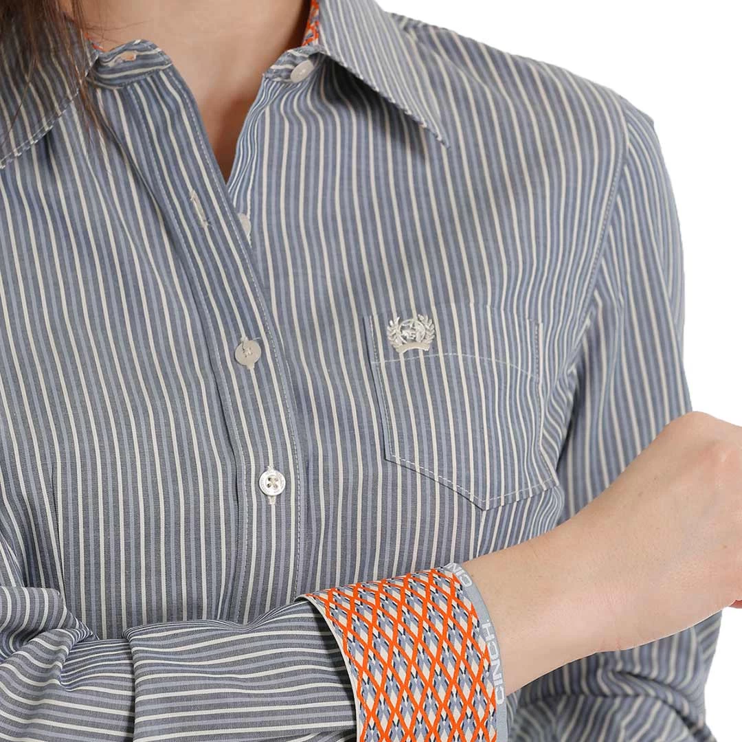A necessary mainstay for anyone’s wardrobe, this classic shirt kicks it up a notch with striped cotton plain weave construction accented by contrast trim. Added details include an open left front pocket, embroidered CINCH logo and white buttons.