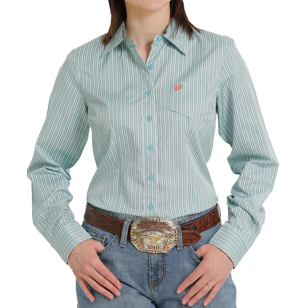 An ideal choice for active days on the farm, this light blue striped button down keeps you comfortable and in style with its poly/TENCEL/cotton twill weave construction. Design features include contrast trim, an open left front pocket with embroidered CINCH logo and light blue buttons.