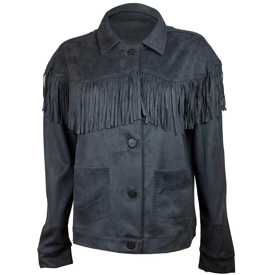 For the coolest look day or night, choose this edgy black polyester faux suede trucker jacket crafted by Cruel Denim. Adorned with cowgirl-favourite fringe detail, this chic jacket brings your standard denim and boots outfit to a whole other level.