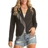 This Daniel X Diamond jean jacket goes to new heights with this flashy rhinestone fringe throughout. It features a metallic button front, point collar and two chest flap pockets with button closures. The gunmetal rhinestone fringe is on the sleeves and back.