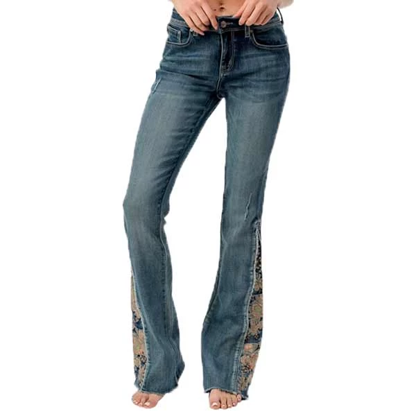 Grace In LA Women’s Floral Inset Flare Leg Jeans