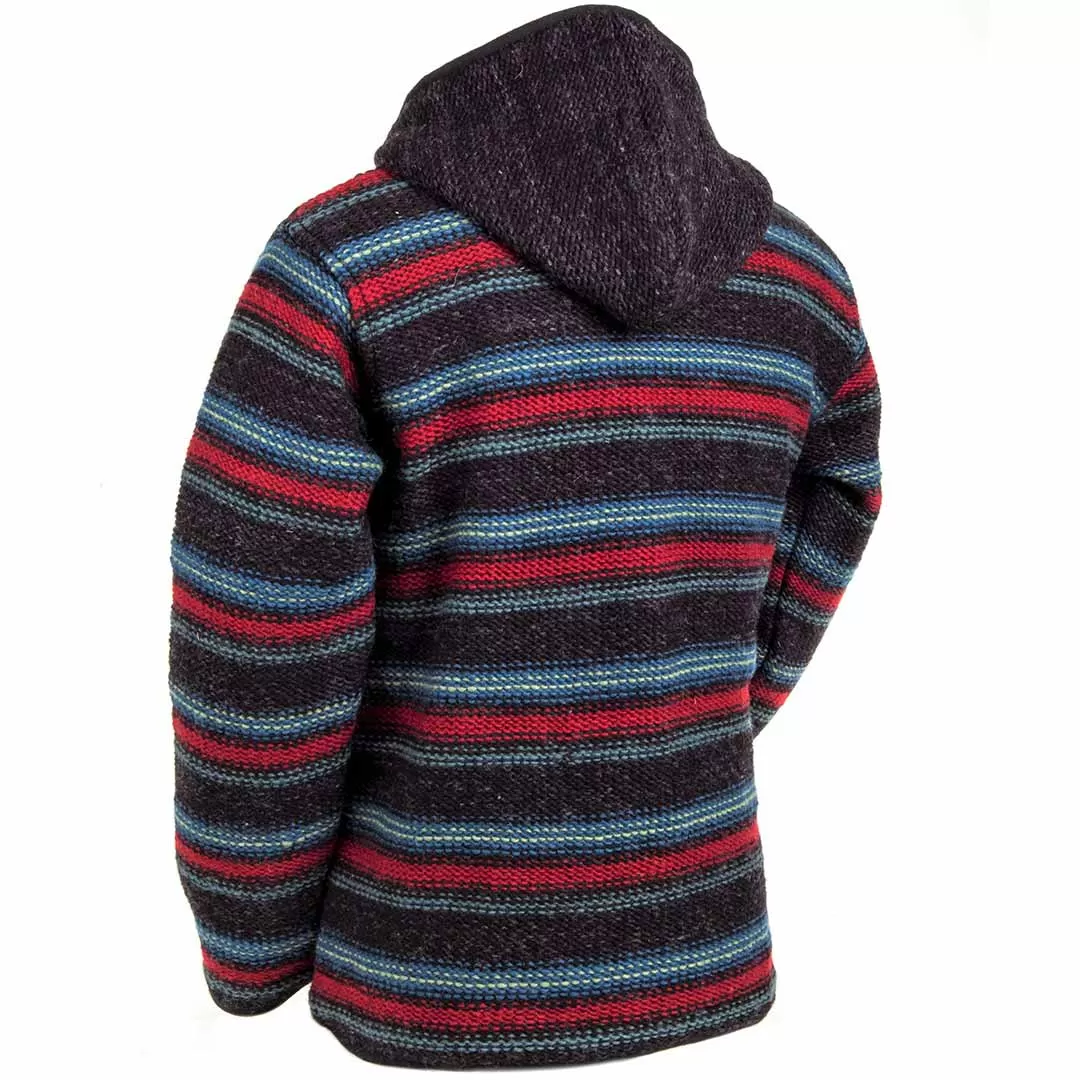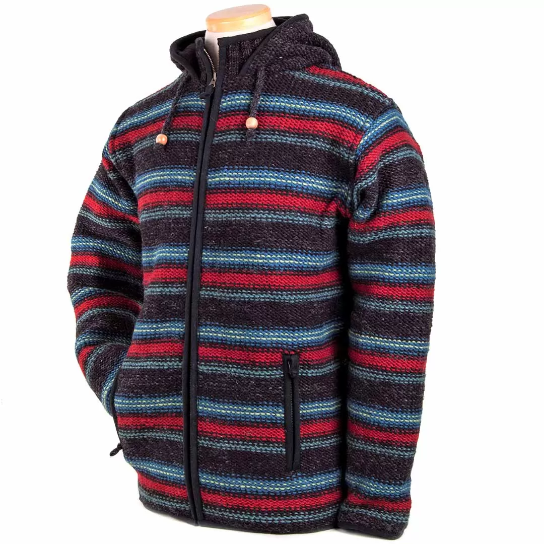 Fun-loving and fancy free, Lost Horizons’ Evan Sweater is the epitome of easy-to-wear. The double ply reverse knit and addition of a hood makes this design super warm, while the wooden toggles and inset collar add a hint of tailored refinement. Finished with tape at the waist and wrists and a pair of convenient zippered pockets.