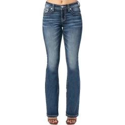From Miss Me these bootcut jeans feature floral and dreamcatcher embroidered pockets, whiskering, fading, contrast stitching and 5-pocket design.