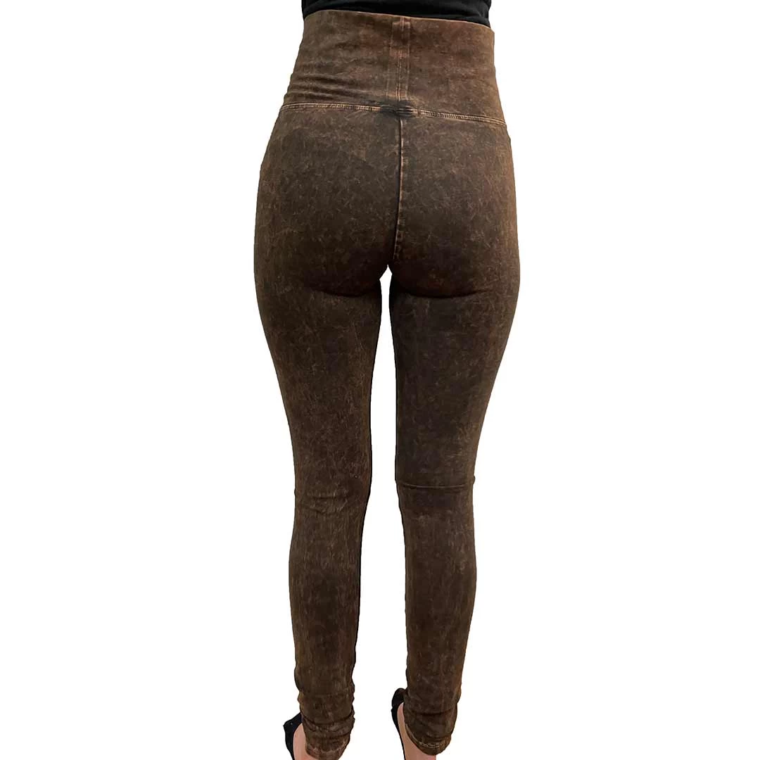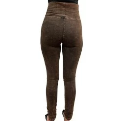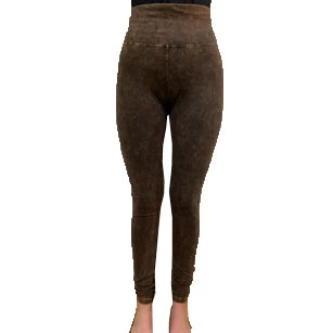 Western style by Pat Dahnke. Take centre stage with these distressed yoga pant leggings. These leggings feel really good on, like a yoga pant, they are designed to hug the body. Mineral washing gives this soft fabric a leather look. Made of Rayon and Lycra so they are easy care and have a comfortable fit.