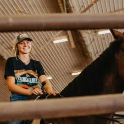 This heather black, unisex fit tee from Red Dirt Hat Co features the “Army Sunset” patch design.