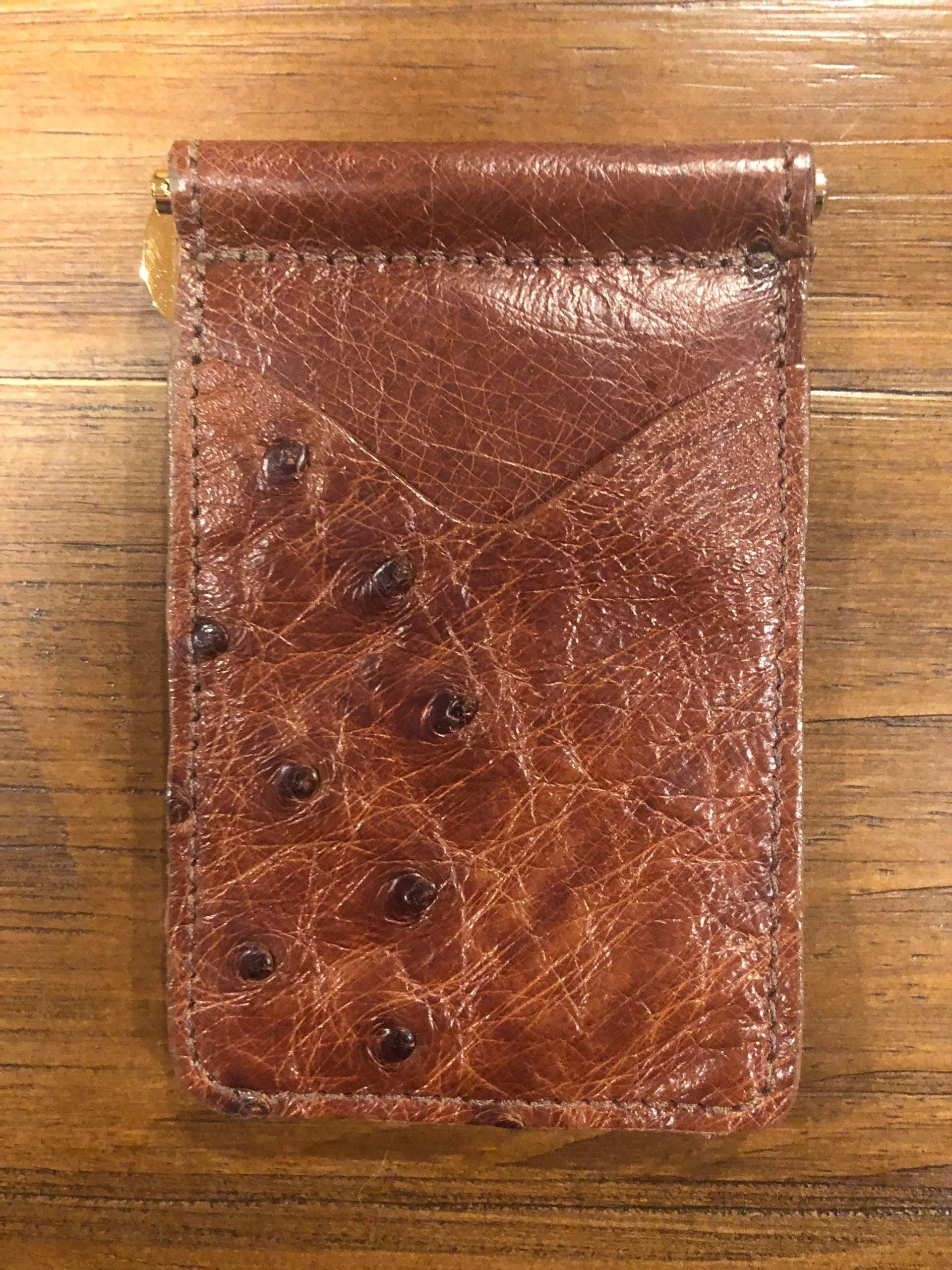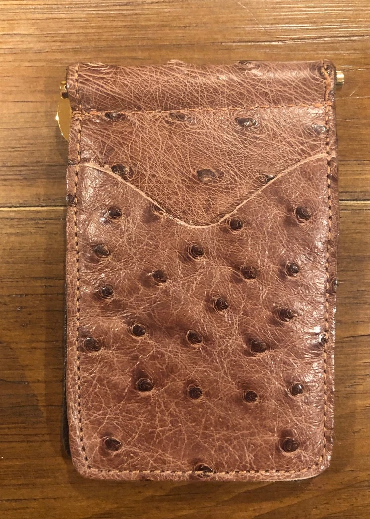 - Full Quill Ostrich Leather Money Clip Wallet