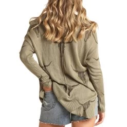 Rock & Roll Cowgirl Women’s Steer Head Pullover Sweater