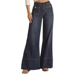 Take a note from the ’70s with a modern rendition of the palazzo pant done in denim. From Rock & Roll Denim, these women’s jeans feature a high rise, square pockets and a zip fly.