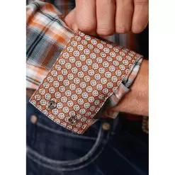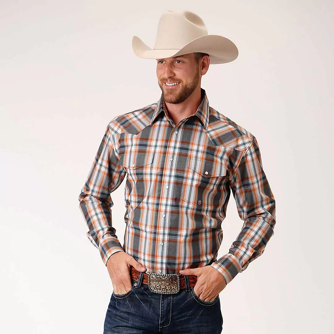 This plaid print men’s shirt from Roper features 1 point yokes, 2 snap pockets, contrast inside trim and pearl snaps. Pair with your favorite denim or western dress pants for a night our at your favorite local spot.