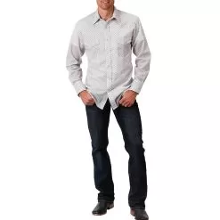This teardrop print men’s shirt from Roper features pointed yokes, 2 snap flap pockets and snap cuffs. Pair with your favourite denim or western dress pants for a night out at your favourite local spot.