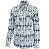 From Roper, this fun blouse features a floral print, 3/4 flutter bell sleeves and a split V-neck.