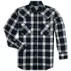From Panhandle’s Rough Stock, this paisley print is just the ticket to a trendy look for the office or any evening plans you might have. The shirt features pointed yokes, pearl snaps and contrast fabric on the under cuffs.