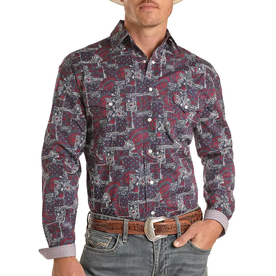 Rough Stock Men’s Patchwork Paisley Snap Shirt