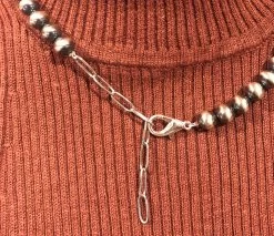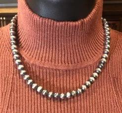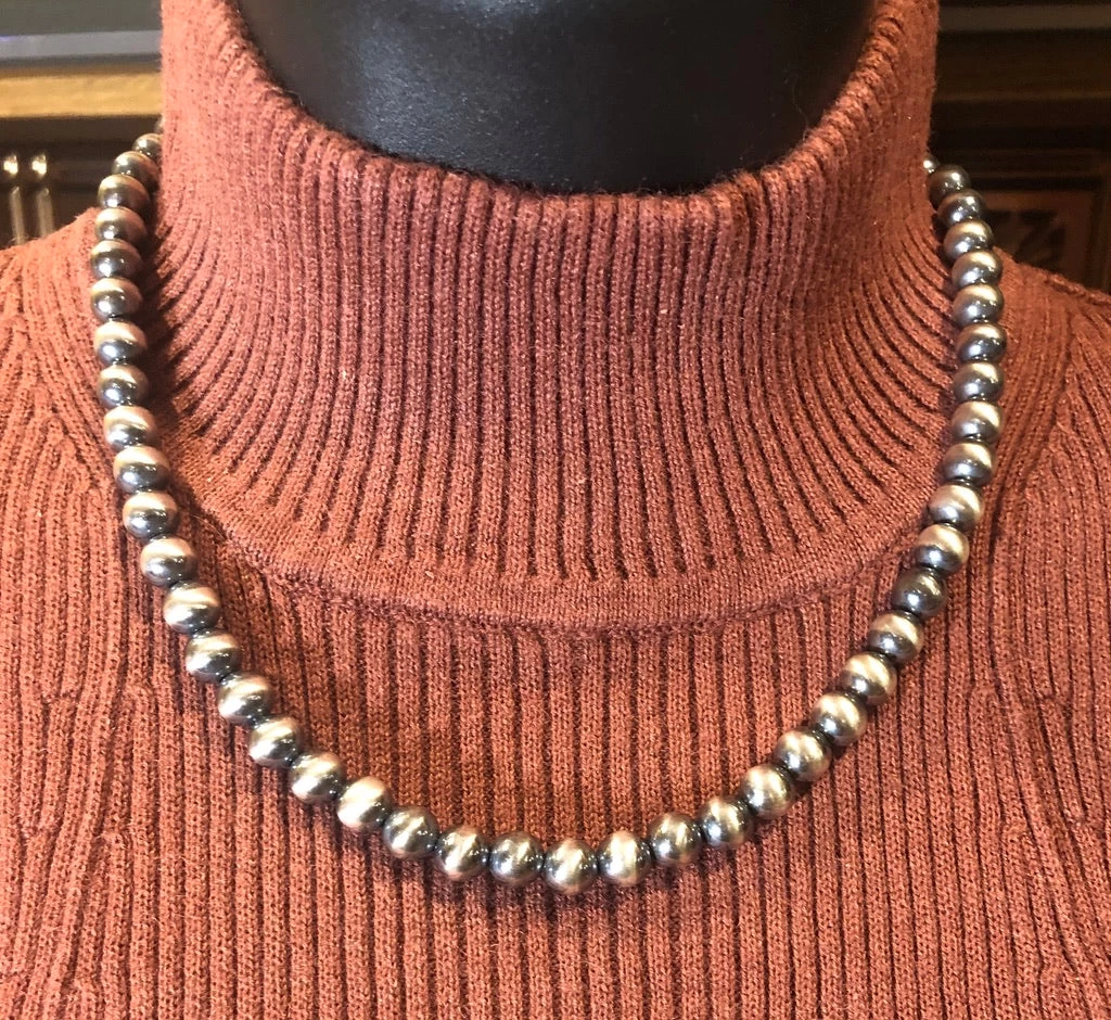 Sterling Silver Navajo Pearl Necklace | 24” length, 12mm Beads | Hand Beaded | Local Kansas Artist