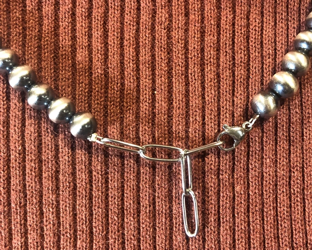 Sterling Silver Navajo Pearl Necklace |16” length, 4mm Beads | Hand Beaded | Local Kansas Artist