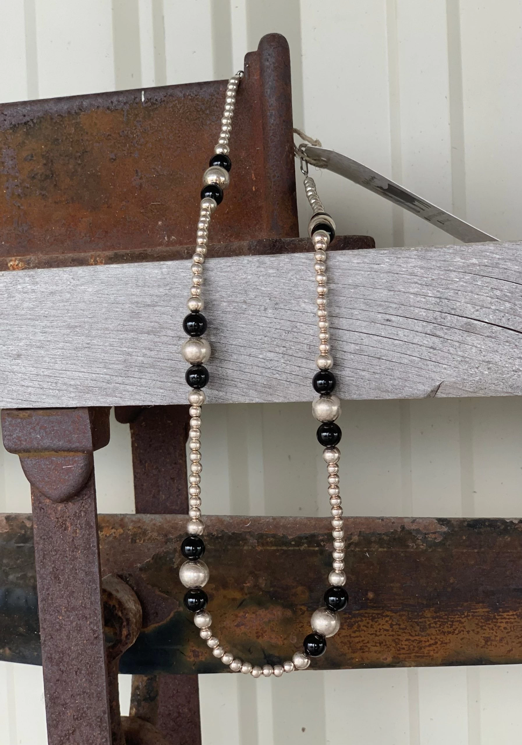 Rustic Rose Jewelry | #191 Black Onyx & Sterling Silver Beaded Necklace