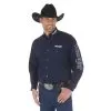 From Scully, this shirt features western yokes, contrast candy cane piping, smiley pockets and decorative grouping of 2 diamond shape snaps.
