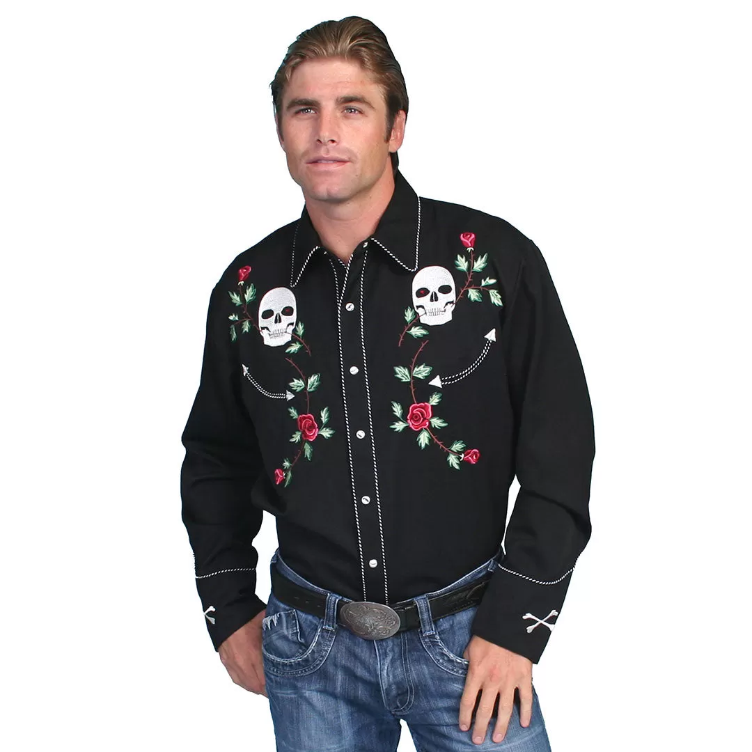 Scully Men’s Skull & Rose Embroidered Western Dress Shirt