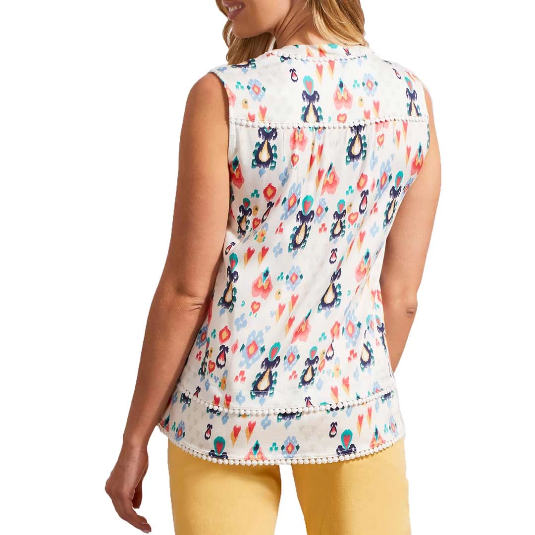 Tribal Women’s Embroidered Pom Pom Hem Print Blouse