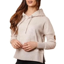 From Wanakome, this women’s terry hoodie will be your new favourite. It has a cowl neck hood and features a front kangaroo pocket, cropped length and 3D logo on the hood.