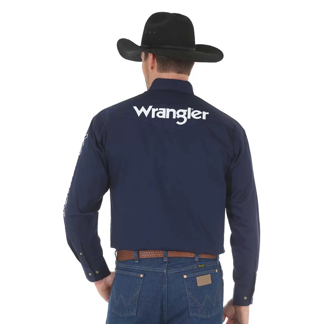 We know you love the brand, now you can show the world with this bold logo shirt from Wrangler. Made of top-quality navy fabric, the Wrangler logo embroidery is done in contrasting white, giving a very sharp clean look. Wear the look of a champion with this distinguished logo shirt.