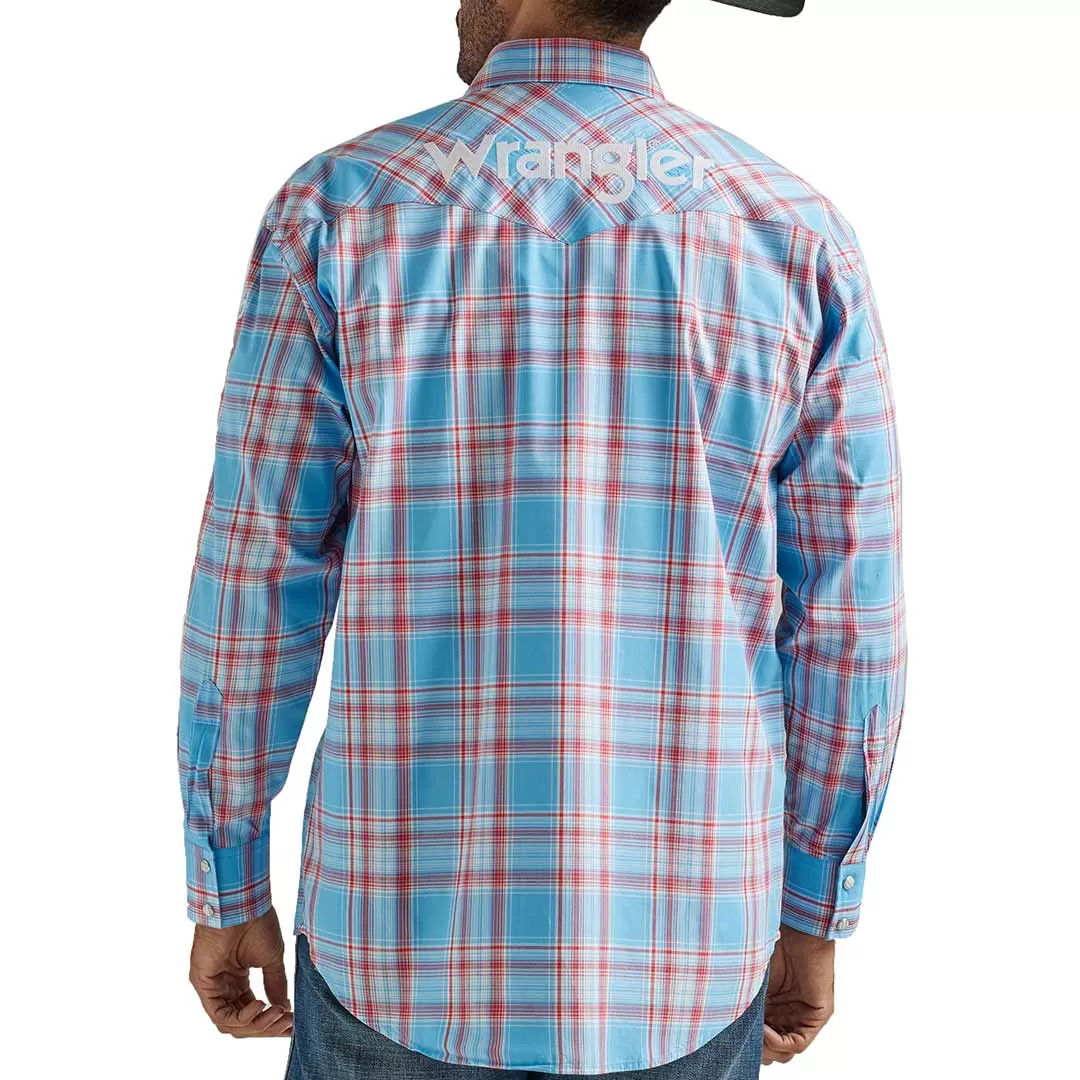 A must-have in every cowboy’s closet, Wrangler Western shirts for men offer authentic cowboy style at its peak. This long-sleeve snap shirt features a classic plaid pattern in vivid hues for a versatile look you can dress up for roping competitions or dress down for a casual day of riding—the shirt’s 100% cotton construction ensures all-day comfort no matter the occasion. The style is outfitted with all the features that make Western snap shirts iconic, including a spread collar, Western yokes and snap flap pockets, adjustable cuffs, and a practical pencil slot at the left pocket. Adding the final touches of authenticity are Wrangler logos down the left sleeve, back yoke, and over the left pocket.