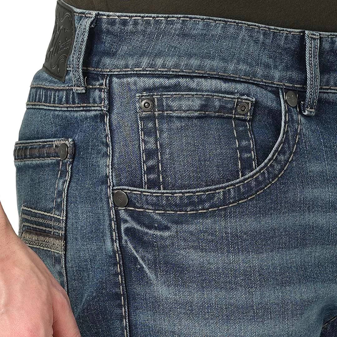 From the Rock 47 by Wrangler collection, this style rocks a cool vibe. It sits lower on the waist, has a slimmer fit through the seat, thigh and knee, and features a modern back pocket design.